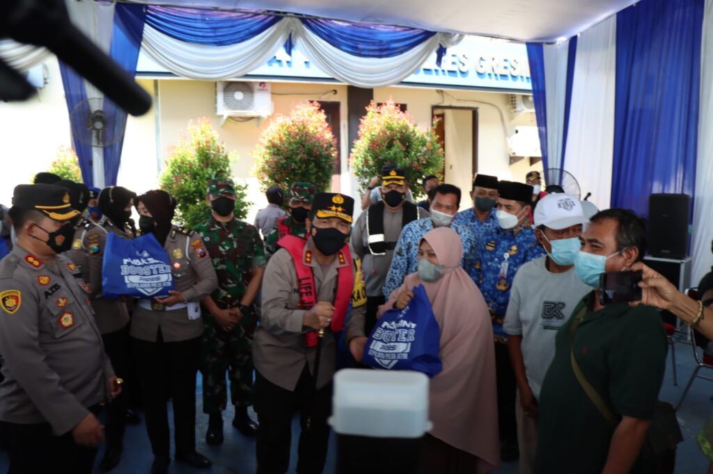 Gresik – Vaksinasi menyasar kepada masyarakat di pesisir Gresik digelar di Satpolairud Polres Gresik. Ratusan warga antusias mengikuti vaksinasi yang dihadiri Kapolda Jawa Timur, Irjen Pol Nico Afinta.