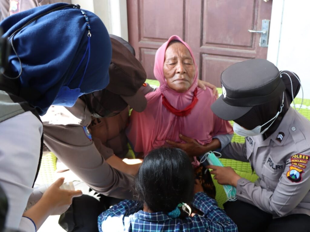 Kapolres Probolinggo AKBP Teuku Arsya Khadafi melalui Kasat Binmas Polres Probolinggo AKP Rini Ifo Nila Krisna mengatakan, saat melihat kejadian tersebut, personel Polwan yang melaksanakan pengamanan dengan sigap memberikan pertolongan pertama kepada warga lansia tersebut, guna mendapatkan perawatan medis.