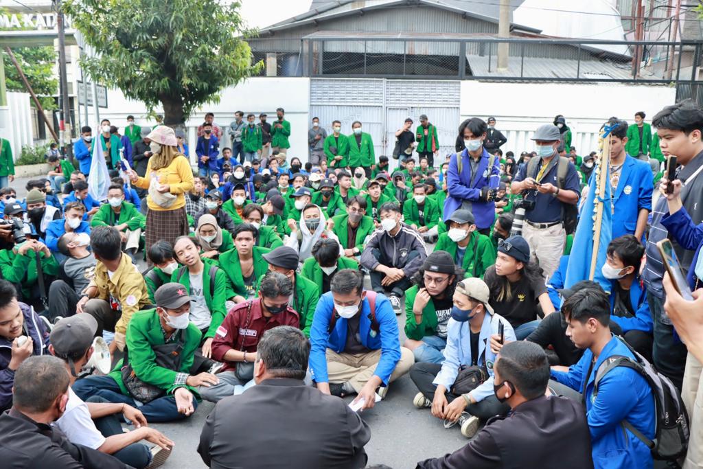 “Kami dari Polri mengapresiasi kepada adik-adik mahasiswa yang telah menyampaikan aspirasinya dengan damai dan tertib sehingga dapat terciptanya situasi Kamtibmas yang aman dan kondusif,*ungkap AKBP Agung S.I.K.