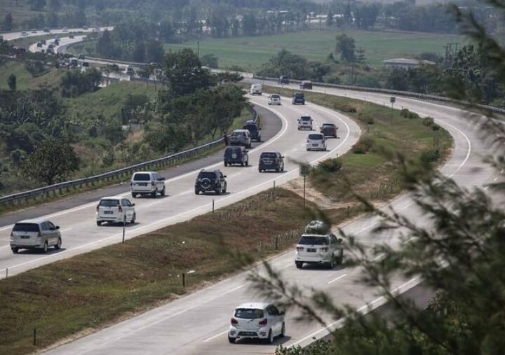 Korlantas Polri mencatat jumlah Kendaraan dari arah Tol Jakarta-Cikampek (Japek) menuju ruas Tol Trans Jawa menurun sejak...