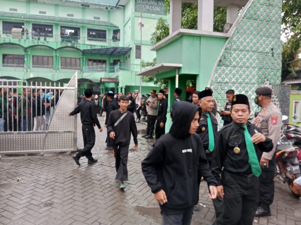 Pembaiatan Santri Baru Pencak Silat Nahdlatul Ulama Pagar Nusa Kab.Gresik dilaksanakan Apel pengamanan di halaman Gedung PCNU di pimpin oleh Kabag Ops Polres Gresik Kompol Adria Diana Putra.