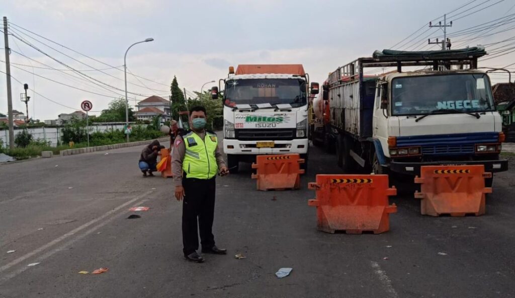 Kasat Lantas Polres Gresik AKP Agung Fitransyah bersama anggota Satlantas Polres Gresik melakukan pengaturan di Jalan raya Desa Tebaloan Kecamatan Duduksampeyan, Gresik. Petugas melakukan pengaturan, pemantauan dan pengamanan arus lalu lintas.