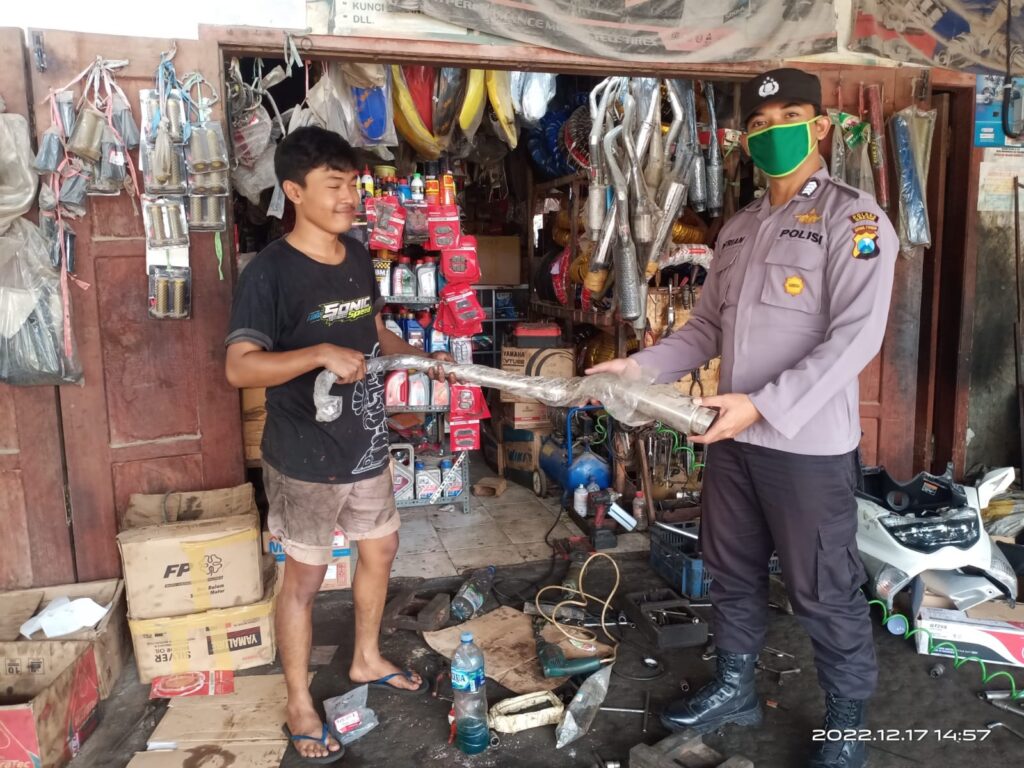 Untuk itu, Bhabinkamtibmas Polsek Panceng polres gresik polda jatim Ahmad Wahyu Adrian, SH, Bripka, (kanit binmas) bersama tim melakukan sosialisasi kepada bengkel dan penjual knalpot agar tak melayani pembelian maupun penjualan knalpot brong.