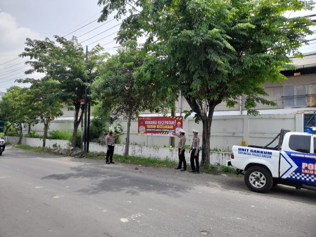 Kasatlantas menambahkan, pemasangan spanduk maupun baliho himbauan telah kita pasang di beberapa lokasi titik rawan kecelakaan di Wilayah Hukum Polres Gresik