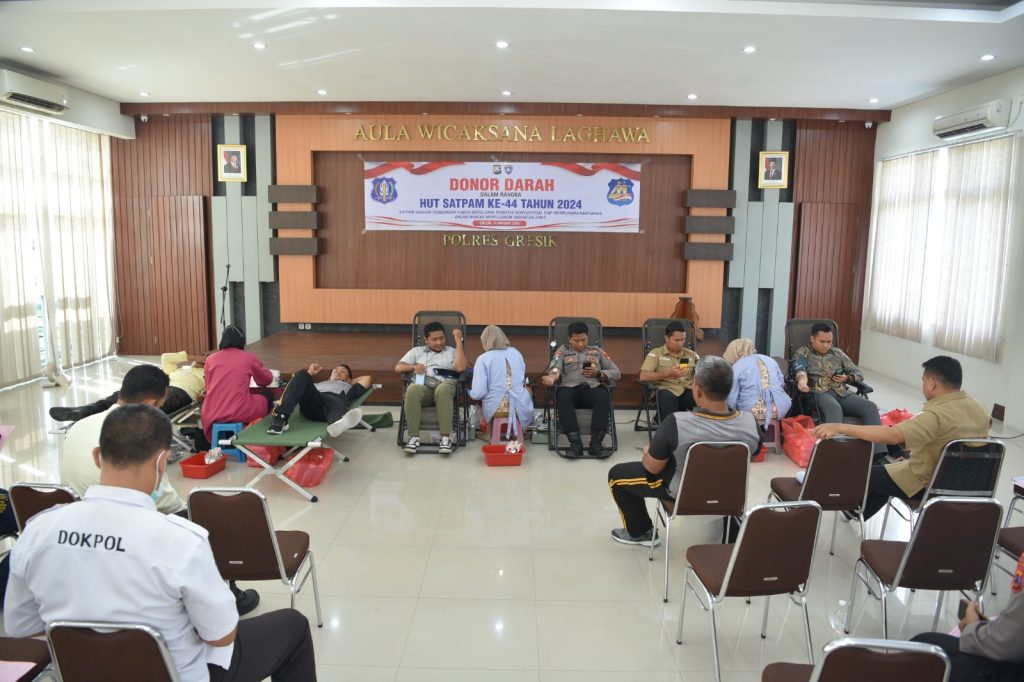 GRESIK – Polres Gresik menggelar aksi sosial donor darah dalam rangka memperingati Hari Ulang Tahun (HUT) Satuan Pengamanan (Satpam) ke-44 pada Jumat (3-1-2025). Kegiatan ini berlangsung di Aula Wicaksana Laghawa Polres Gresik dengan melibatkan puluhan peserta dari berbagai kalangan.