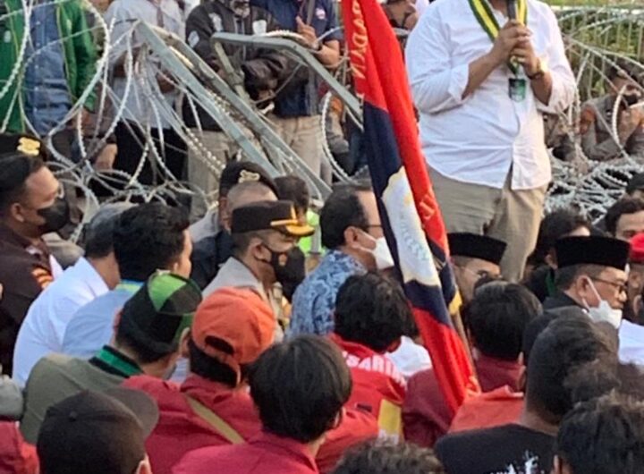 Surabaya – Usai ditemui oleh Walikota Surabaya, Eri Chayadi di depan gedung Balai Kota Surabaya, masa aksi...